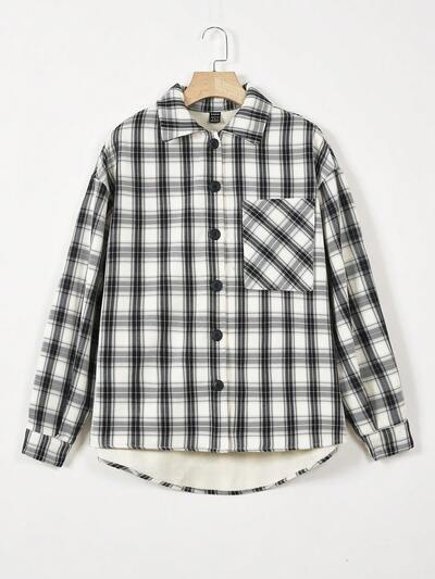 Camisa con bolsillo parche y hombros caídos con estampado de cuadros-65%