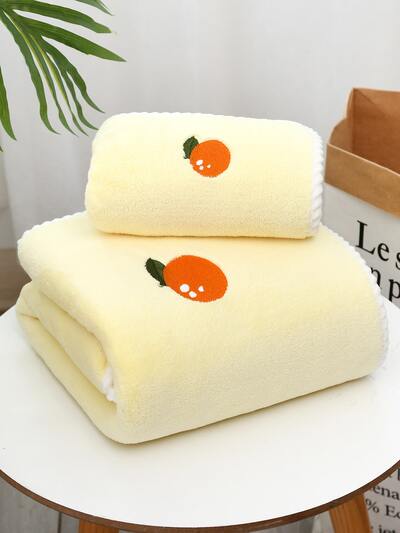 1 pieza toalla de baño o toalla de mano de fibra ultrafina con bordado de fruta