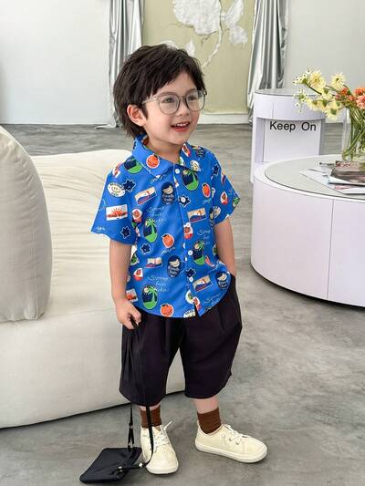 Camisa de manga corta aleatoria y estampada para jóvenes, ideal para uso diario