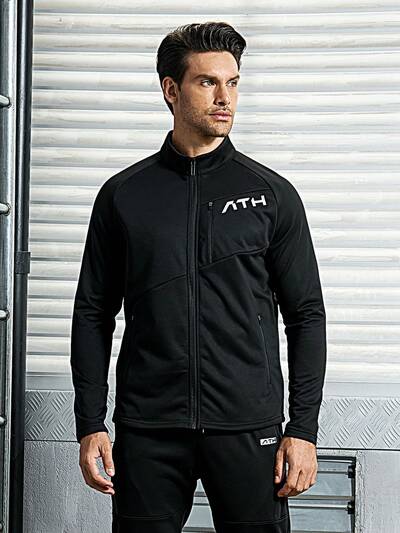 Veste de sport zippée avec graphique lettrage pour hommes, Top de sport-60%