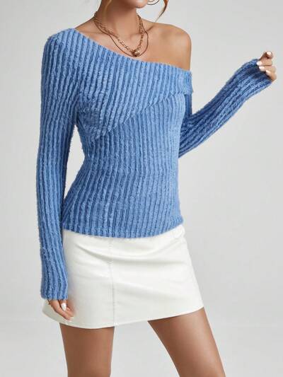T-shirt Femme Coupe Slim Col Oblique-32%