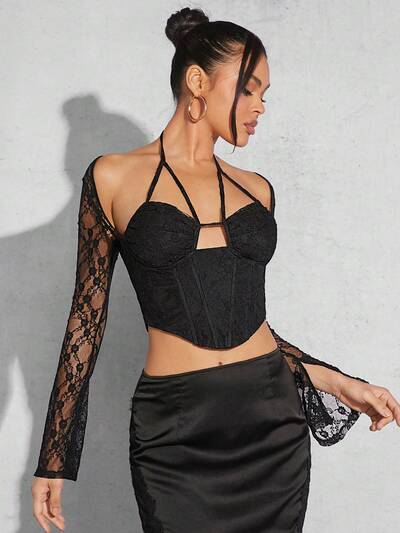 Top court buste bustier sexy avec découpes en dentelle sur le devant-42%