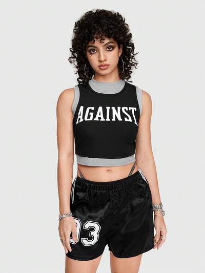 Débardeur Pour Femmes Style Bloc De Couleurs 2 En 1 Avec Motif Imprimé Lettre-32%