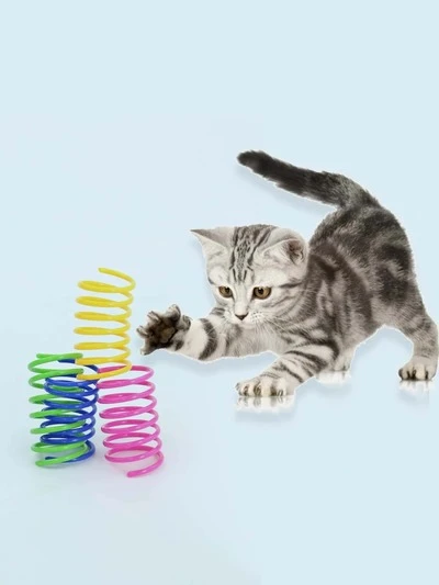 4 pièces/set Jouet de divertissement en plastique à design de ressort de couleur aléatoire pour les amateurs de chats et les mamans de chats. Cadeau pour les amateurs de chiens/chats et les mamans de chiens/chats, jouet interactif pour animaux de compagnie
