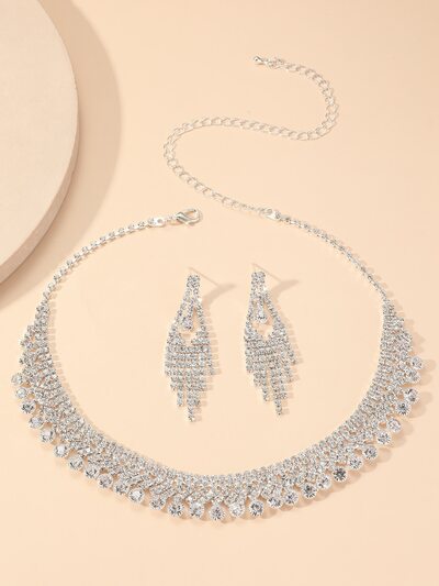 1 pièce Collier en forme de goutte d'eau entièrement serti de strass et 1 paire de boucles d'oreilles à franges entièrement serties de strass, accessoires polyvalents pour robe de soirée