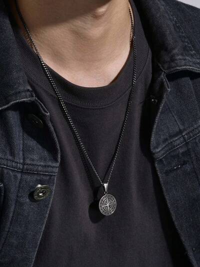 1 pièce À La Mode En Acier Inoxydable Compas Collier À Pendentif Pour Homme Pour Décoration Quotidienne , Pour Bijou Cadeau Et Fête