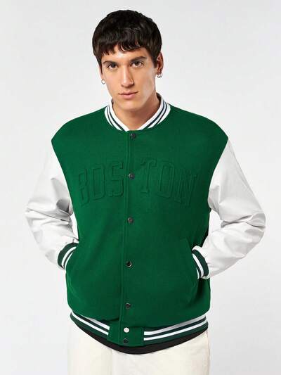 Giacca da baseball oversize da uomo con lettere impresse-65%
