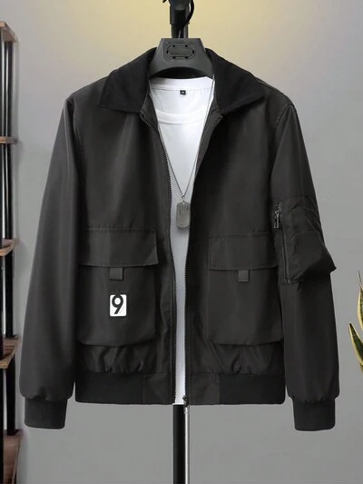 Giacca Cargo Da Uomo Con Tasca A Patta Con Lettere Patch, Senza Tee-65%