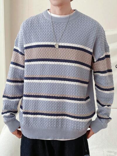 Maglione A Righe Con Spalle Cadenti Oversize Da Uomo-65%