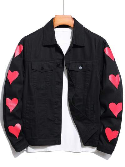 Uomo Giacca in denim con stampa cuore senza maglietta-60%