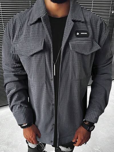 Camicia giacca da uomo in velluto a coste con tasche a toppa-65%