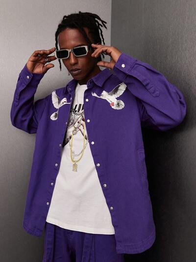 Camicia In Denim Oversize Da Uomo Con Stampa Di Piccione E Lettere-60%