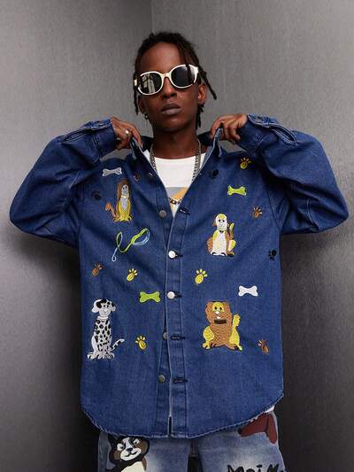 Maglia In Denim Da Uomo A Vestibilità Ampia Con Motivo A Cartone Animato-65%