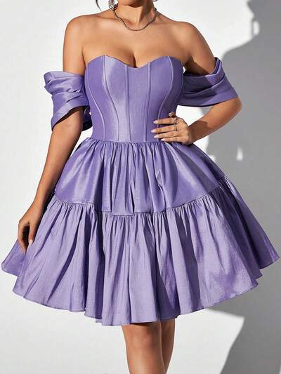 Abito Da Cocktail Da Donna Con Spalle Scoperte Tinta Unita-60%