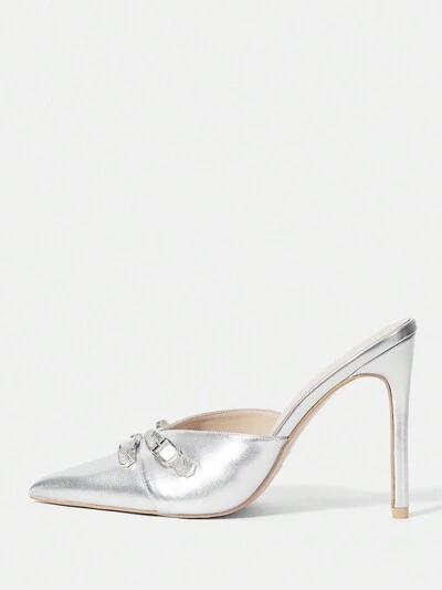 Scarpe Sandali Donna A Punta Con Tacco A Stiletto E Decorazioni In Catena Di Perle Trasparenti-14%