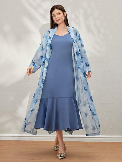 Abito in mesh con maniche a foglia di loto stampate casual da donna-33%