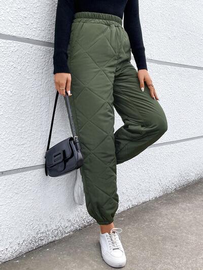レディース ウエストベルト ロングパンツ 緑色-60%