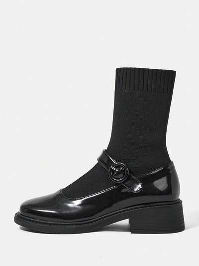 カラーブロックとバックルのディテールが施されたプレチェルシースタイル レディースファッションアンクルブーツ-60%