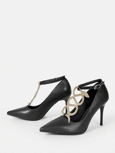 レディース ポインテッド ハイヒールシューズ 付き ラインストーン & 蝶々結び デコレーション