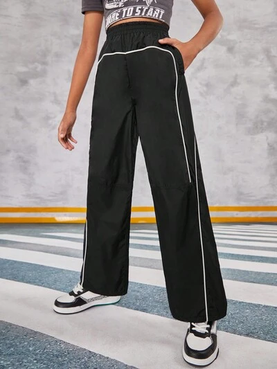 トゥイーン ガールズ クール ストリート スタイル ウーブン ワイドレッグ ストレート パンツ-60%