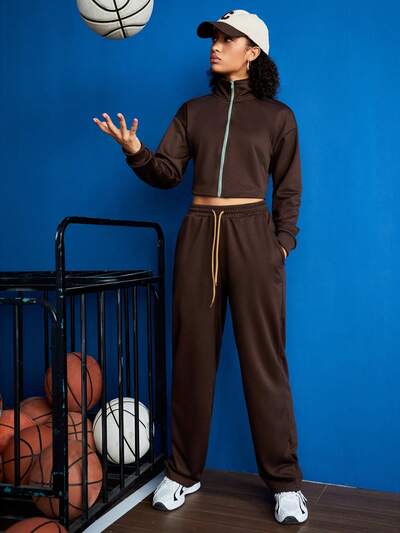 여성용 대조색 스티치 루즈 캐주얼 스포츠 슈트-60%