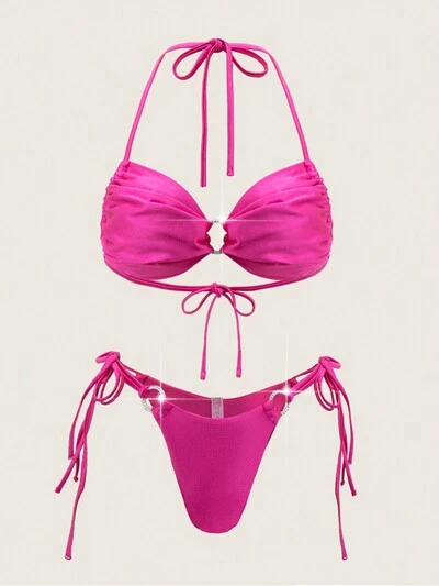 금속 소재 할터 네크라인 여성용 투피스 비키니 세트, 여름 해변용-32%