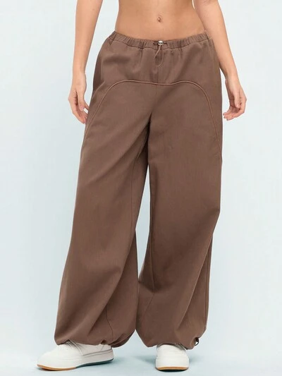 여성용 와이드 레그 드로스트링 허리 팬츠-61%
