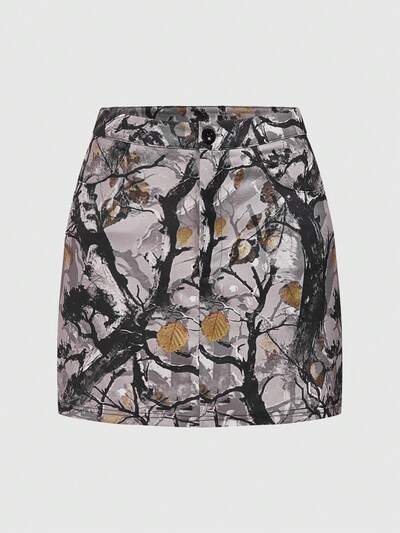 여성용 사실적인 시든 나뭇가지 및 잎 패턴 프린트 스커트-65%