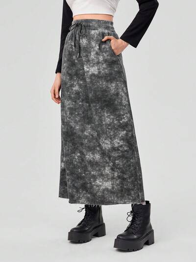 여자 타이다이 드로스트링 신축성 허리 롱스커트-60%