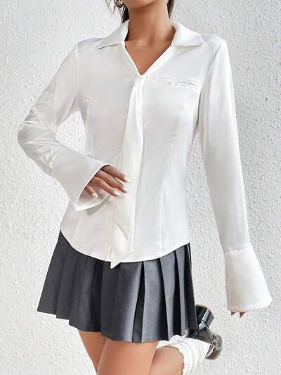 플리츠 앞 매듭 스플릿 슬리브 플리츠 상의