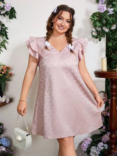 Plus Size Women's Stylish Printed Ruffle Sleeve Dress-29%