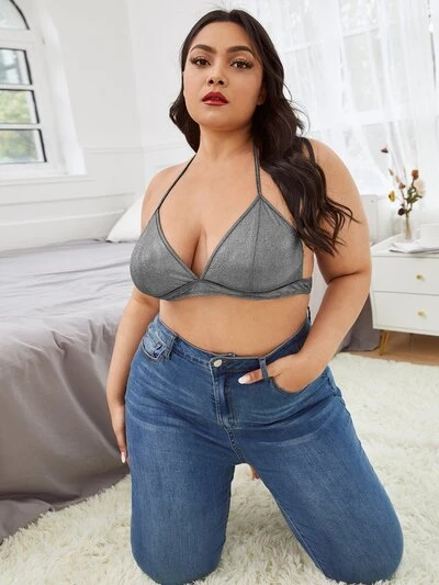 Plus Halter Metallic Bralette-60%
