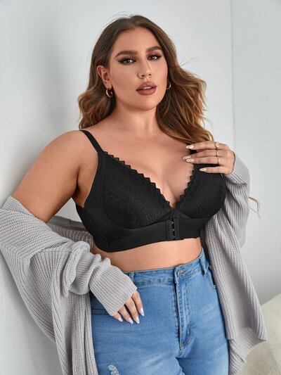 Plus Size Women's Simple Lace Bralette For Daily Wear Sexy Lingerie