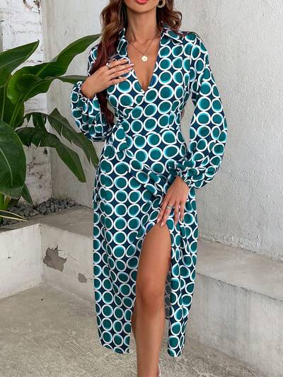 Geometric Pattern High Split Dress Fall Cloth For Women-23%