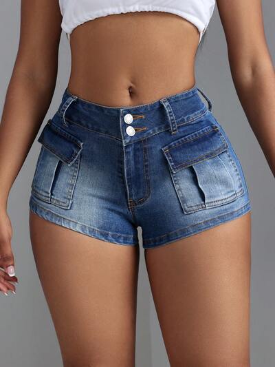 Women Pocket Design Pleated Casual Denim Shorts-65%