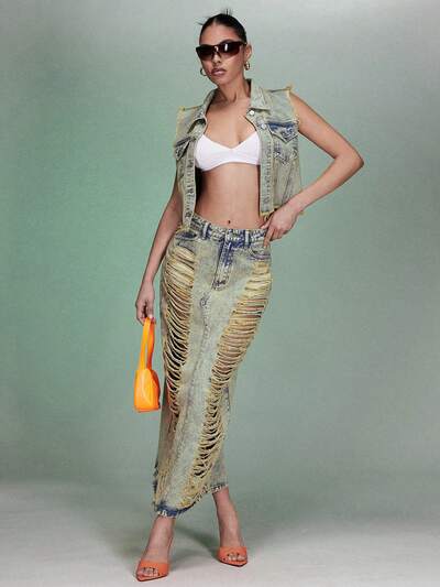 Statement Camouflage Denim High-Waisted Wrap Detail Miniskirt&Denim Skirt&Spring Outfits&Summer Bottoms-60%