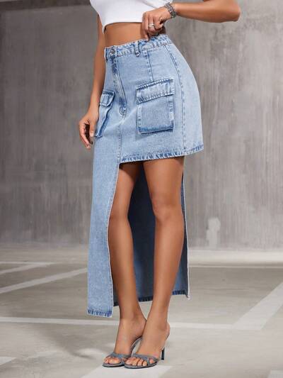 Women'S Denim Cargo Skirt With Asymmetrical Hemline And Pockets-65%