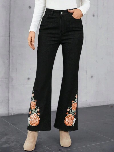 High Waist Fringe Hem Flare Leg Jeans-65%