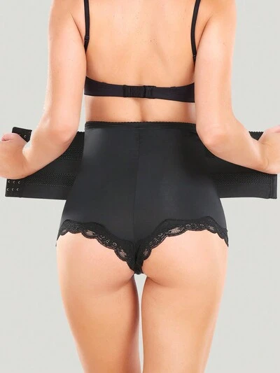 Ladies' Lace Patchwork Shapewear Bottoms With Hook Closure And Tummy Control-65%