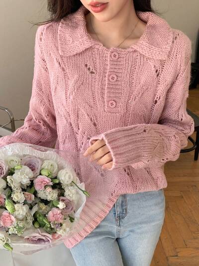 Solid Drop Shoulder Button Front Sweater,Fall Women Clothes-65%