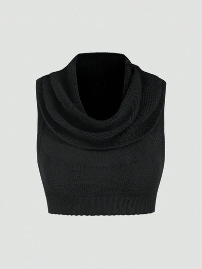 Ladies' Solid Loose Knitted Top With Cowl Collar-35%