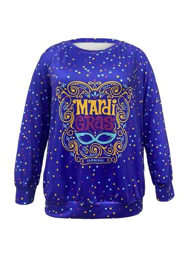 Plus Size Women's Polka Dot & Slogan Print Long Sleeve T-Shirt Fall Cloth For Women-30%