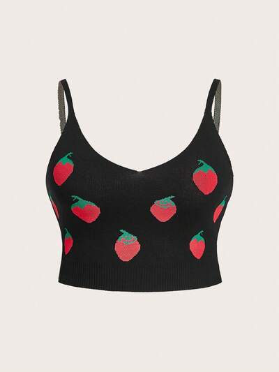 Plus Size Music Festival Strawberry Pattern Cropped Knit Top