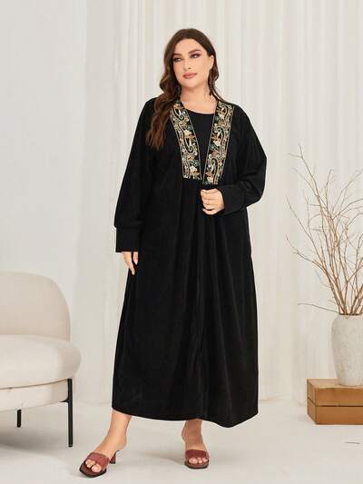 Women's Plus Size Flower Embroidery Open Front Jacket-65%
