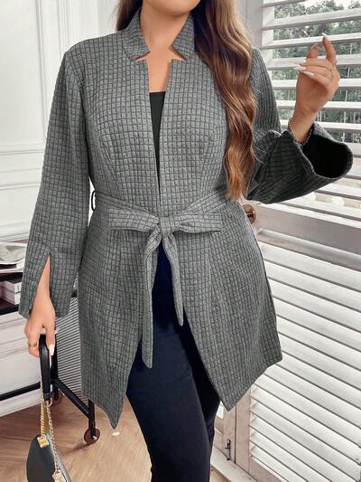 Plus Fringe Trim Waterfall Collar Belted Coat-65%