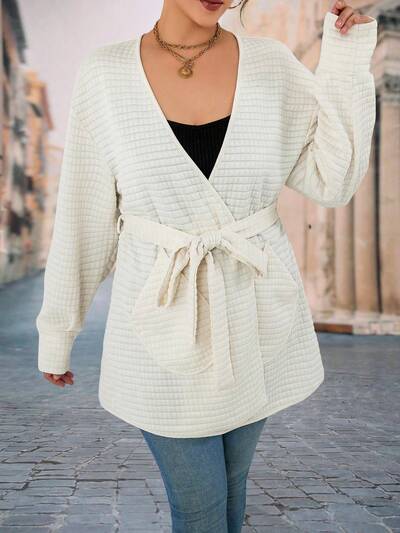 Plus Batwing Sleeve Belted Cape Coat-38%