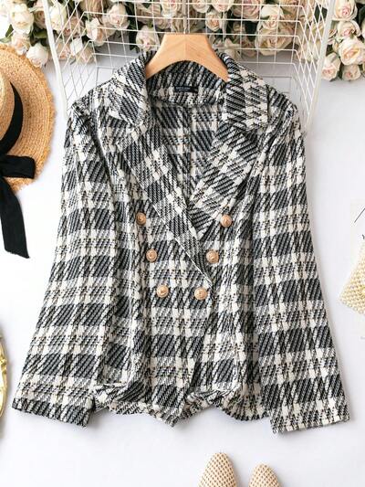 Plus Plaid Double Breasted Overcoat Fall Cloth For Women-60%