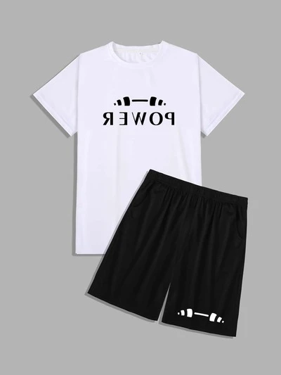 Men Letter Graphic Contrast Side Seam Sports Tee And Shorts Set, Athletic Suit, Tracksuit Workout Set Workout Sets Gym Set Workout Set-65%