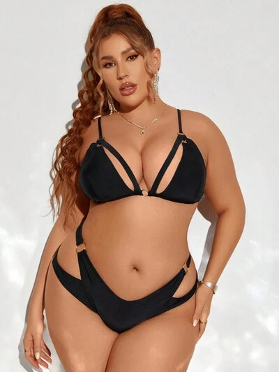 Summer Beach Plus Size Bikini Set With Circular Ring Decorated And Hollow Out Detailing-33%