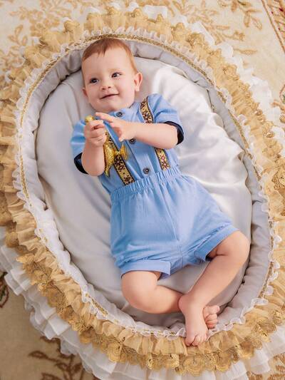 2pcs/Set Baby Boys' Embroidery Short Sleeve Bodysuit And Shorts Set, Summer-44%